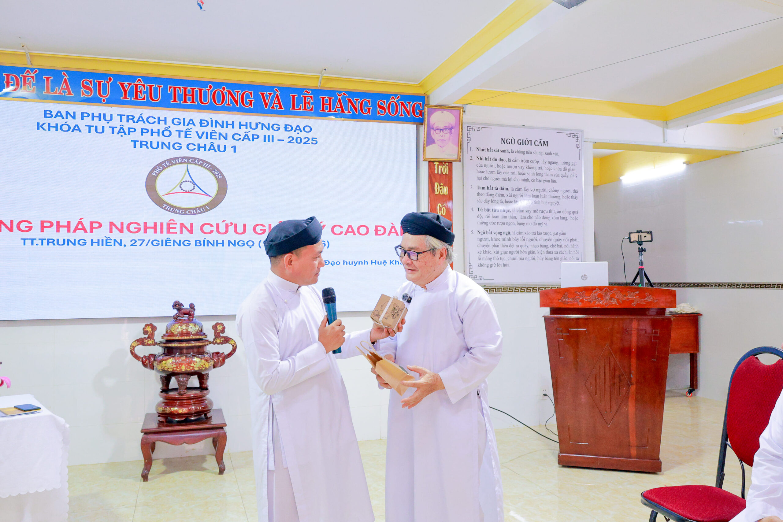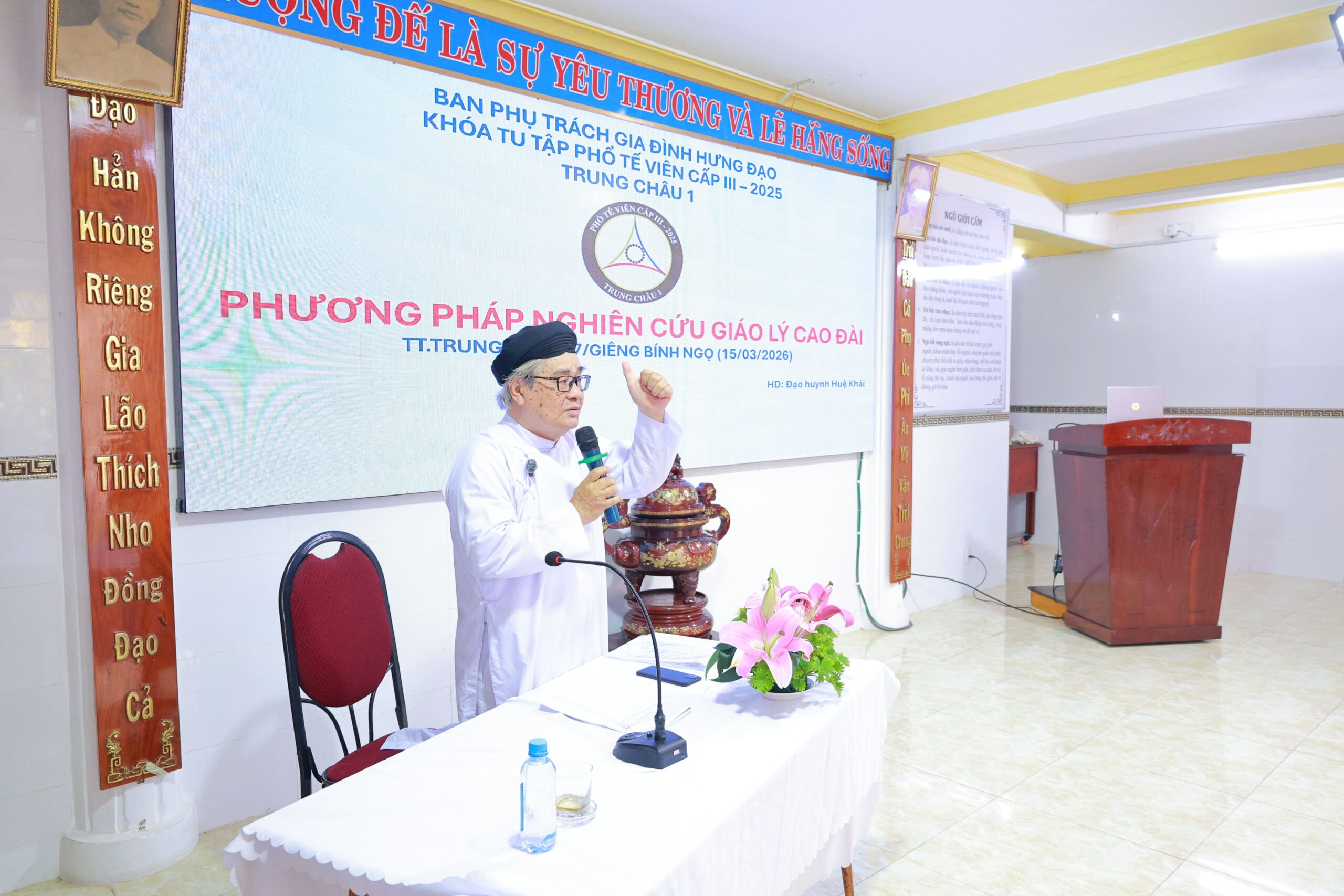 Ngoài chương trình ngoại khóa, khoá sinh còn tham gia hội học chuyên đề “Phương pháp nghiên cứu giáo lý Cao Đài” do đạo huynh Huệ Khải trình bày, góp phần nâng cao nhận thức, kỹ năng nghiên cứu và ứng dụng trong quá trình tu học.
