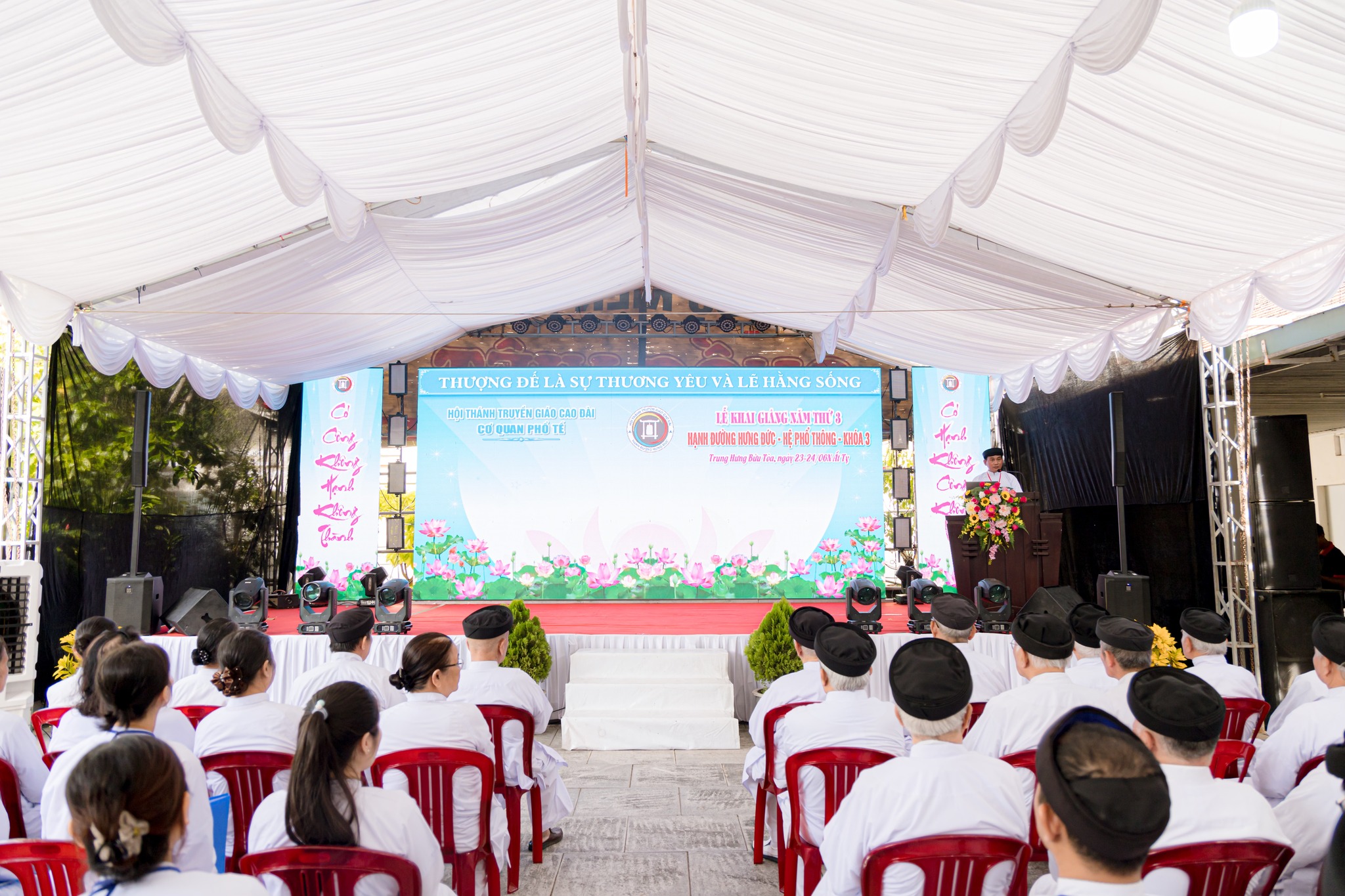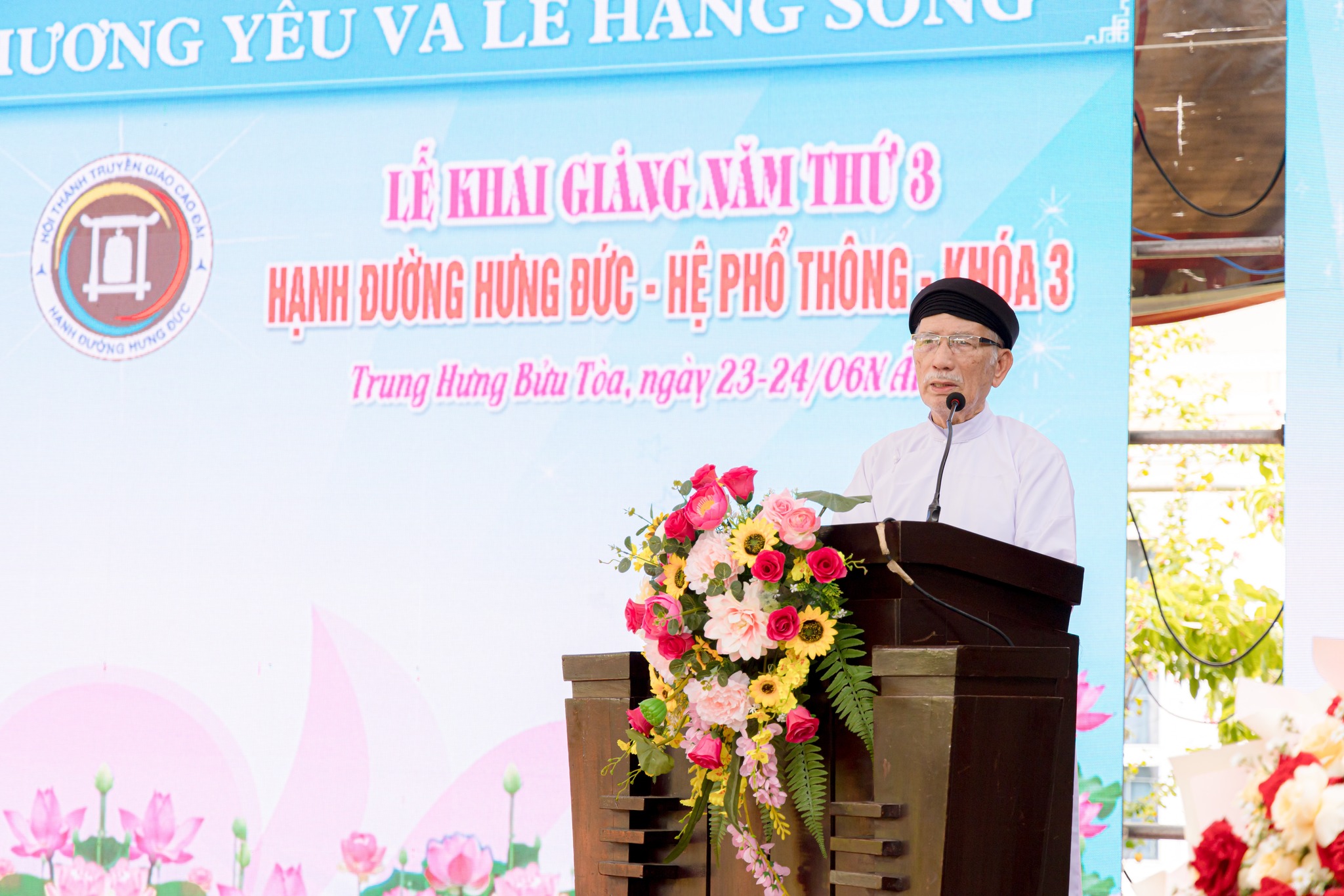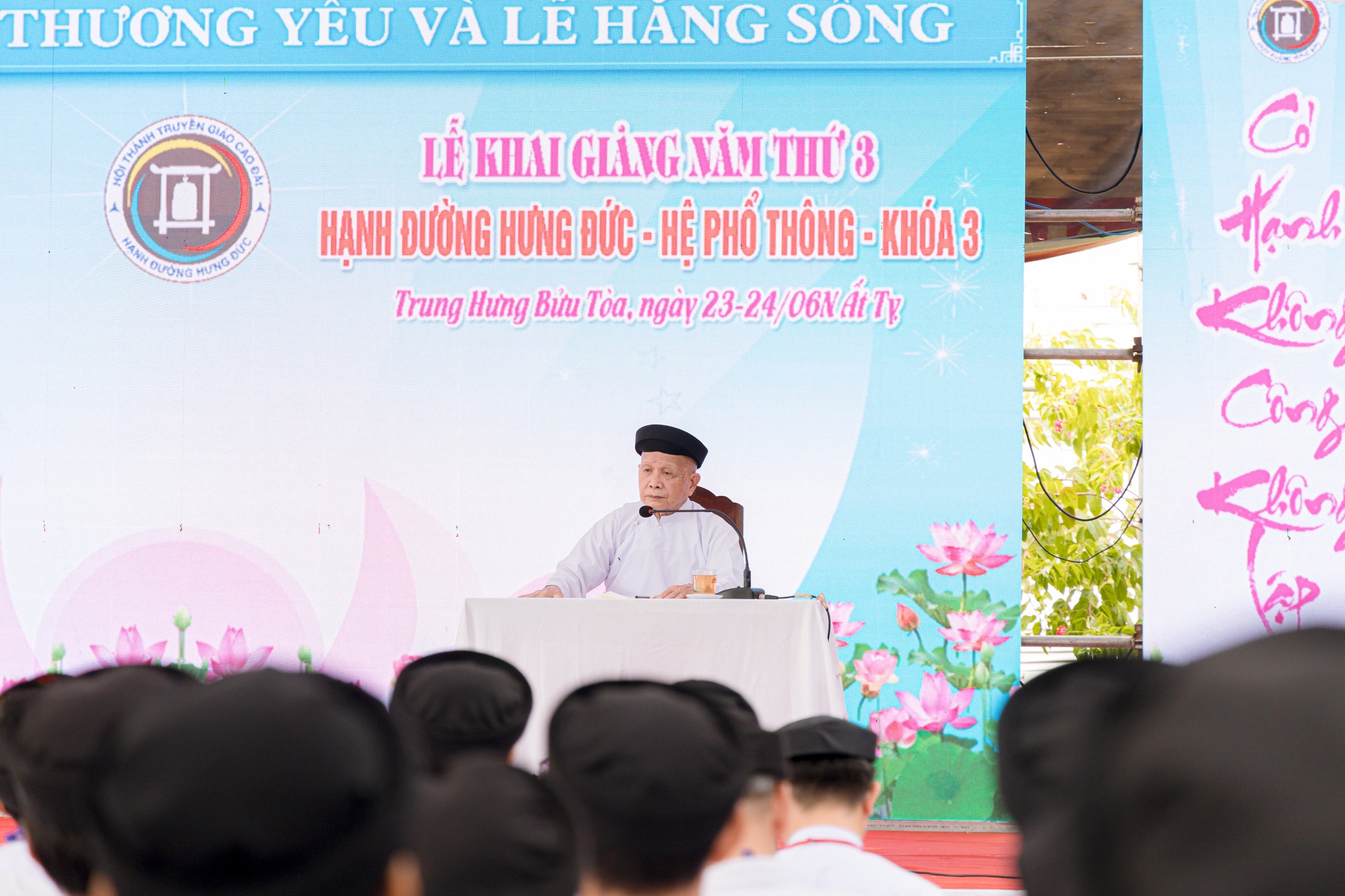 Lễ khai giảng được tổ chức vào sáng ngày 23/06 Nhuận Ất Tỵ với sự tham dự đông đảo quý chức sắc lãnh đạo Hội Thánh, quý chức sắc các Cơ quan Toà Nội Chánh, Toà Pháp Chánh, Cơ quan Nữ phái Hội Thánh; quý chức sắc trong Ban Đại diện Hội Thánh tại Thành phố Đà Nẵng, Gia Lai; quý đạo huynh Đầu Họ Đạo và Đại diện Ban Cai quản, Văn phòng Nữ phái các Họ đạo: Trung Thành, Trung Đồng, Liên Hoà, Trung Sơn, Trung Hải và Trung Bửu; quý chức sắc trong Ban quản lý và 230 hạnh sinh.