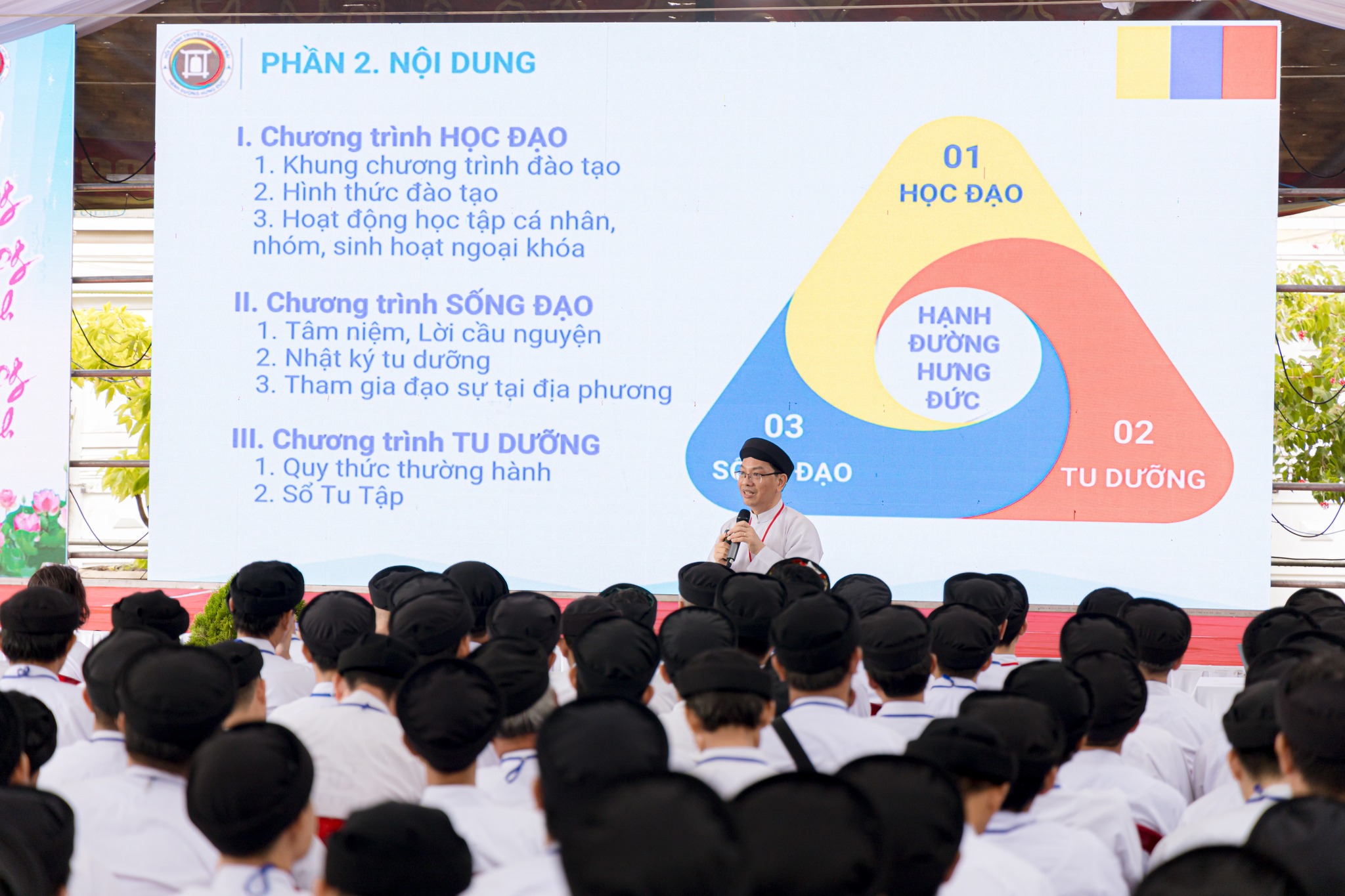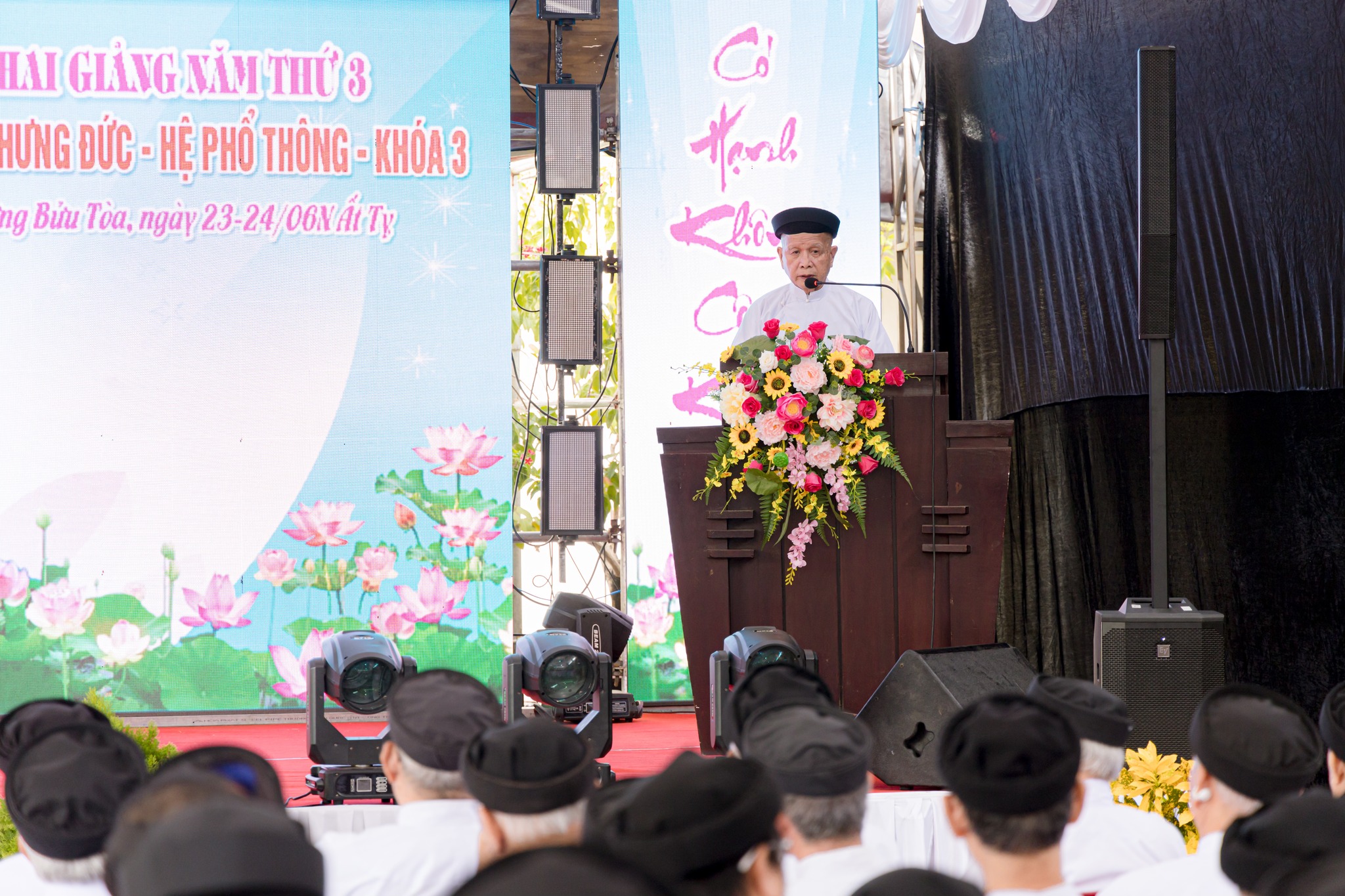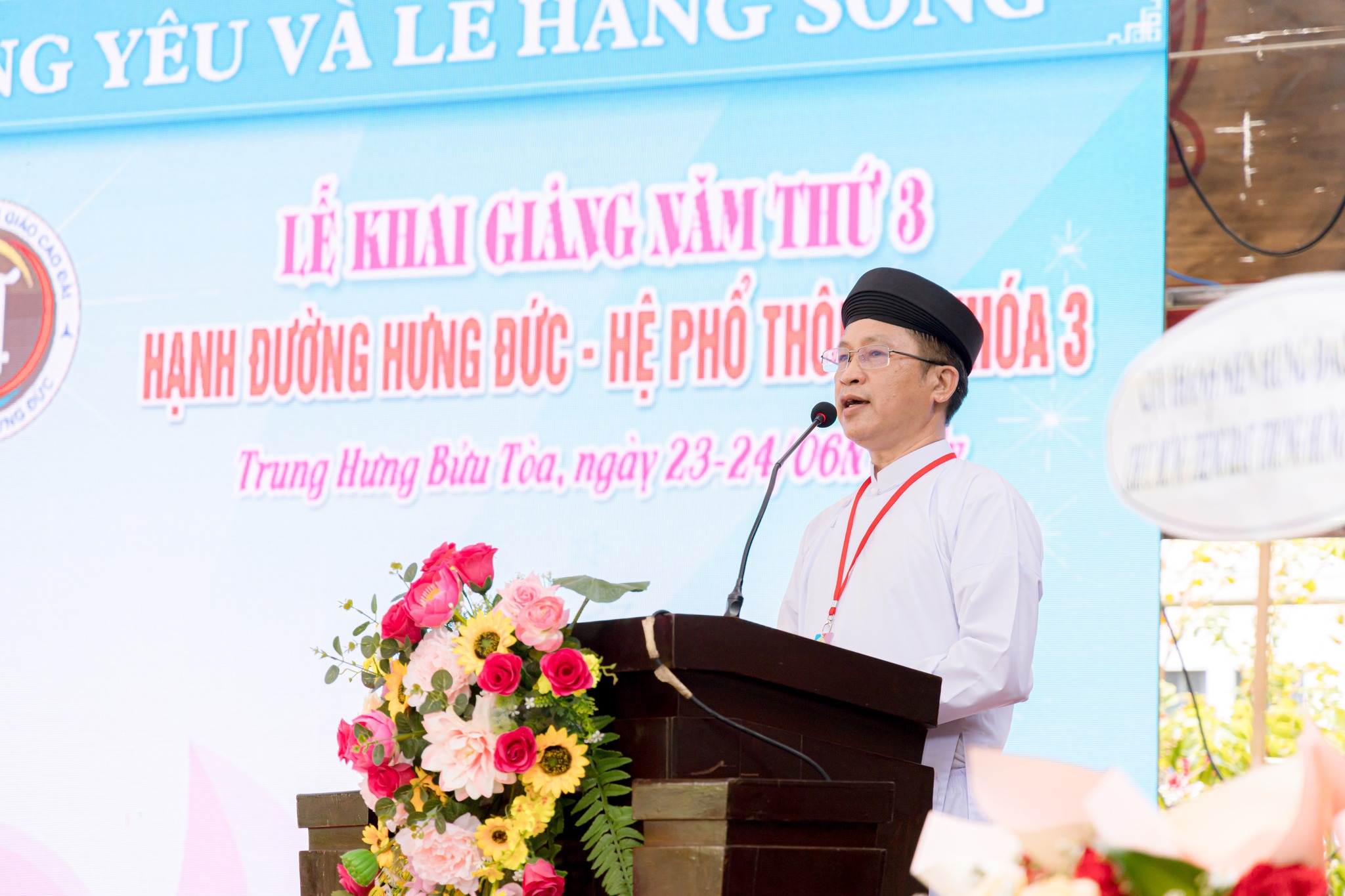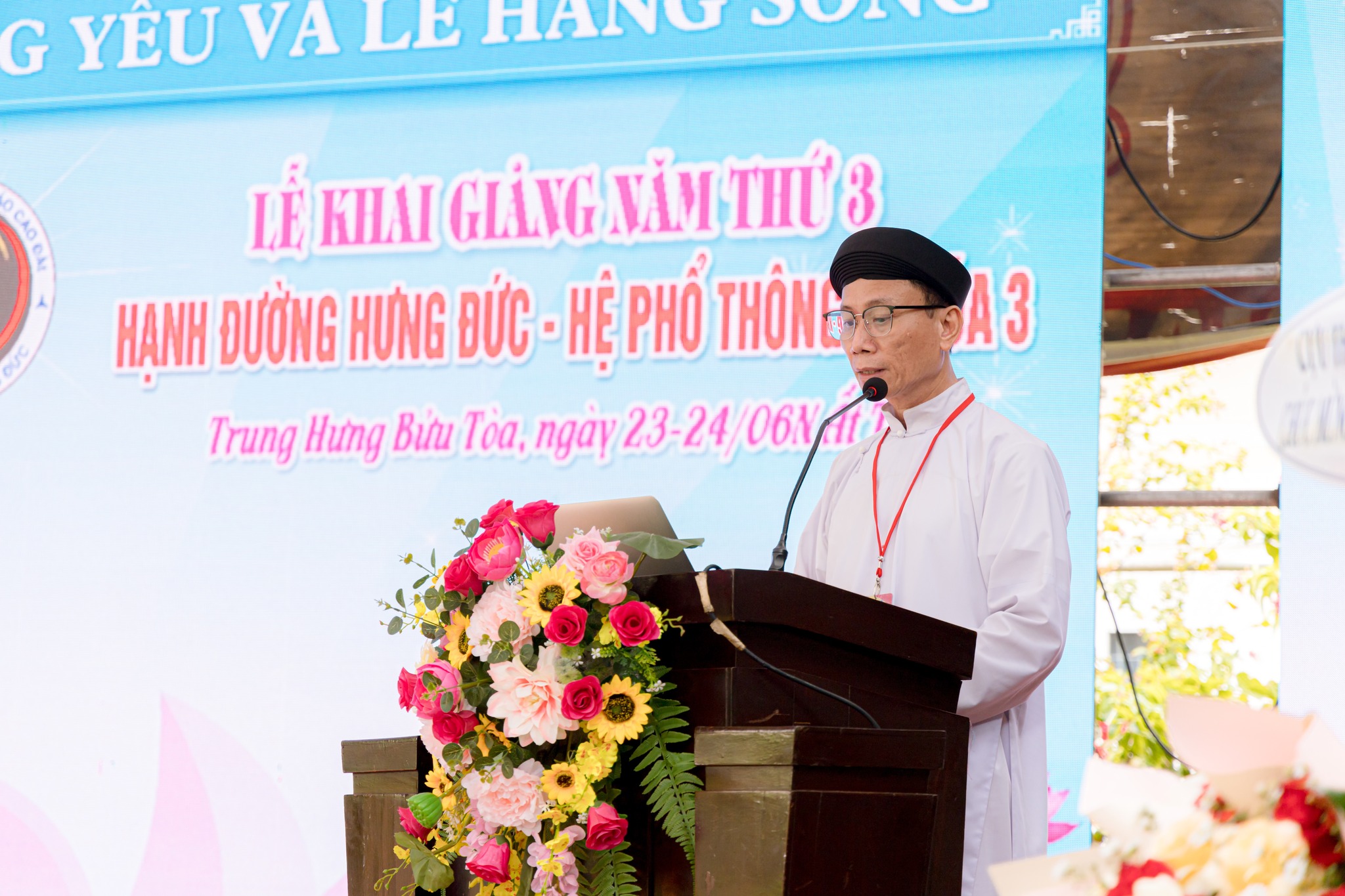 Lễ khai giảng được tổ chức vào sáng ngày 23/06 Nhuận Ất Tỵ với sự tham dự đông đảo quý chức sắc lãnh đạo Hội Thánh, quý chức sắc các Cơ quan Toà Nội Chánh, Toà Pháp Chánh, Cơ quan Nữ phái Hội Thánh; quý chức sắc trong Ban Đại diện Hội Thánh tại Thành phố Đà Nẵng, Gia Lai; quý đạo huynh Đầu Họ Đạo và Đại diện Ban Cai quản, Văn phòng Nữ phái các Họ đạo: Trung Thành, Trung Đồng, Liên Hoà, Trung Sơn, Trung Hải và Trung Bửu; quý chức sắc trong Ban quản lý và 230 hạnh sinh.
