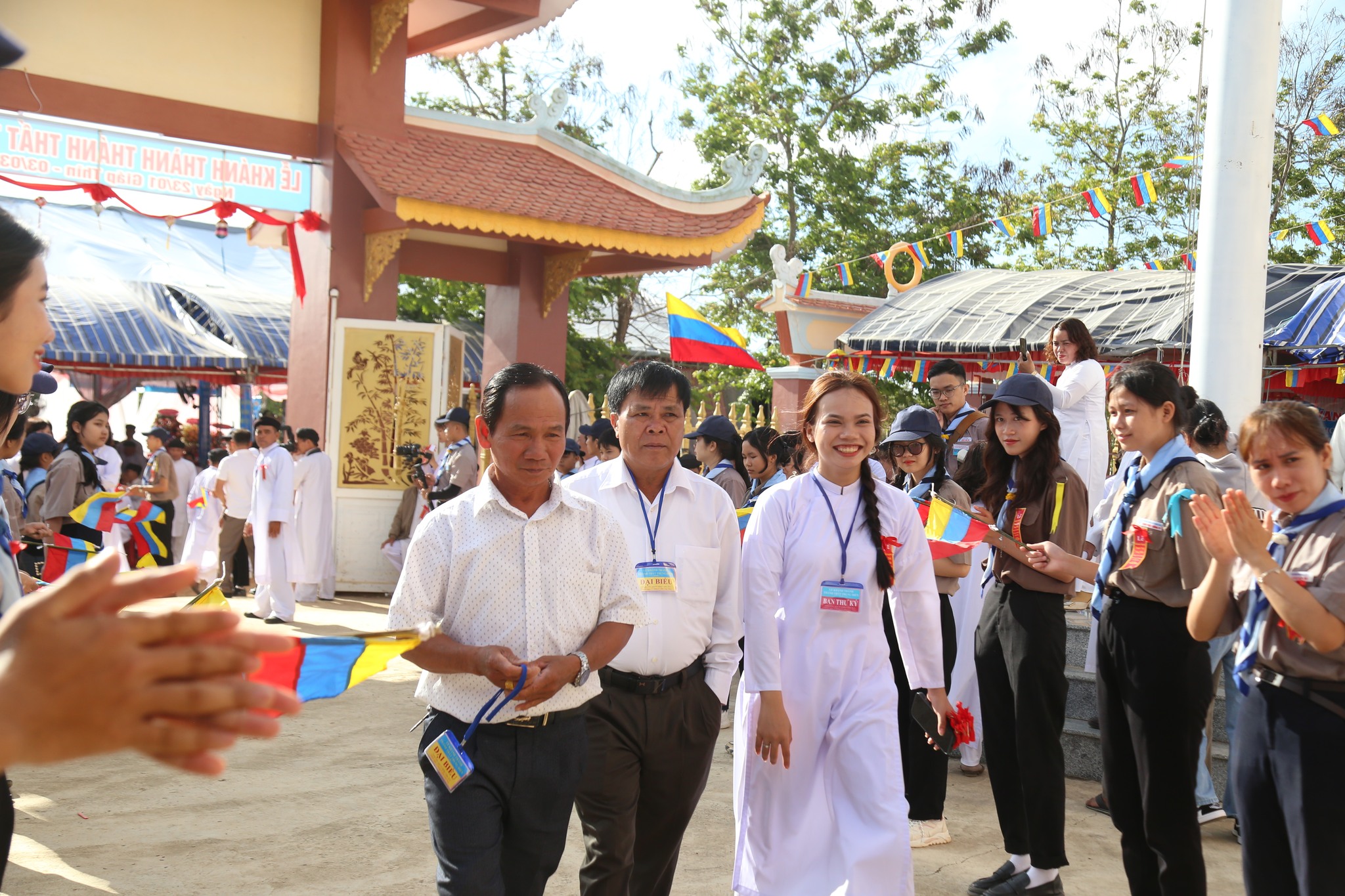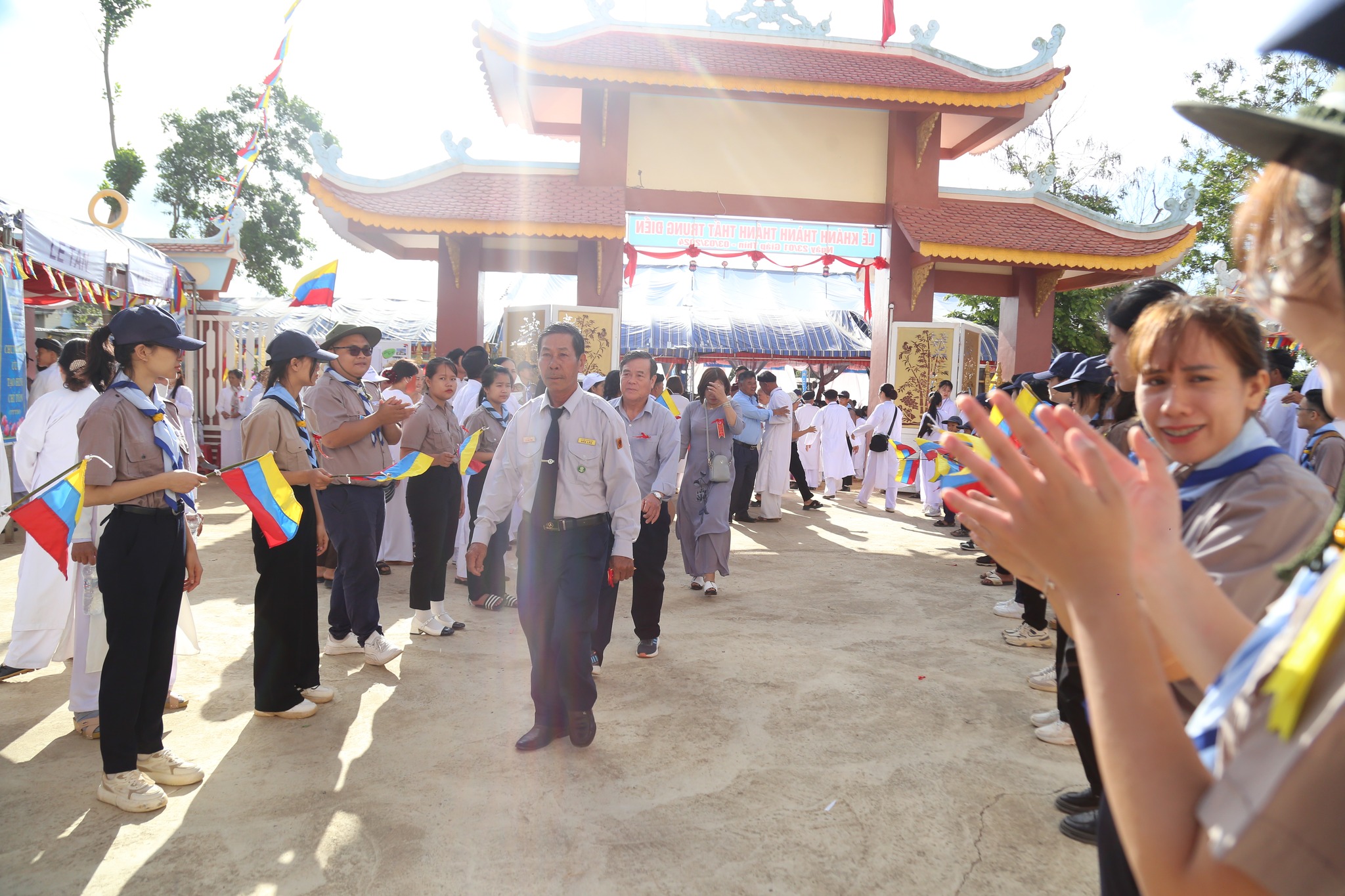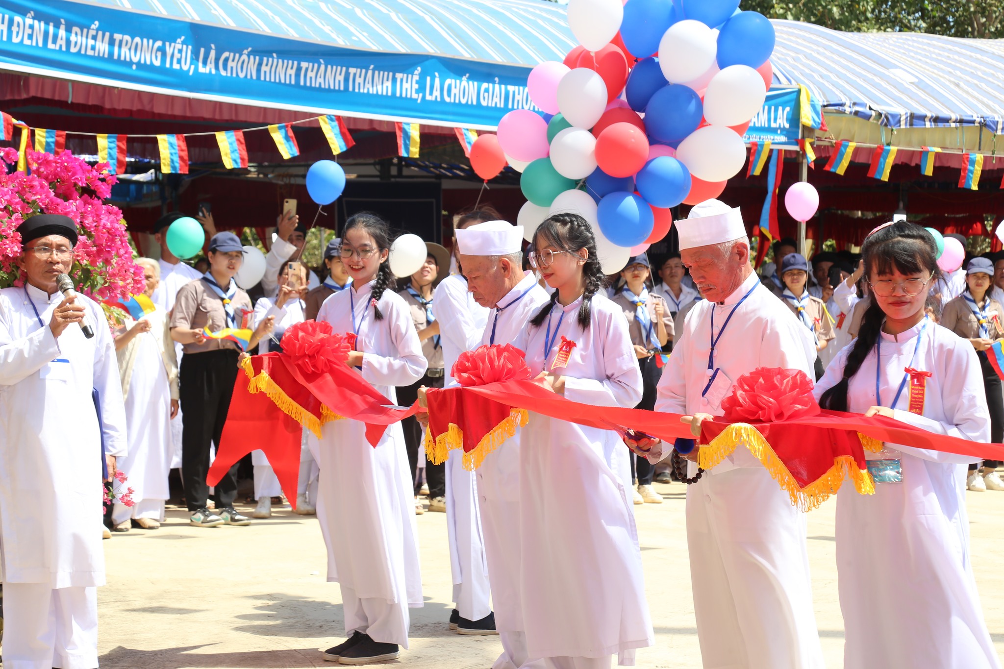 9h00 sáng ngày 23, Tiếng trống hội rền vang đã khai mạc Lễ khánh thành với sự quang lâm tham dự của quý chức sắc Hội Thánh, đại diện các chi phái khác trong nền Đạo, đại biểu chính quyền các cấp sở tại, đại diện các tôn giáo bạn tại địa phương, quý chức sắc, chức việc các Họ đạo, toàn thể quý đạo hữu gần xa cùng các em Hưng Đạo Sinh trên toàn quốc quy tụ.