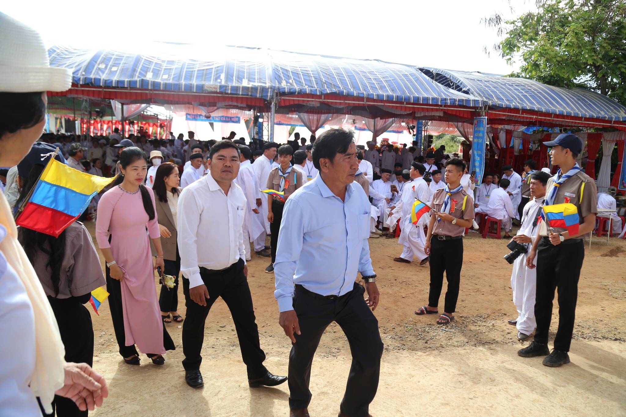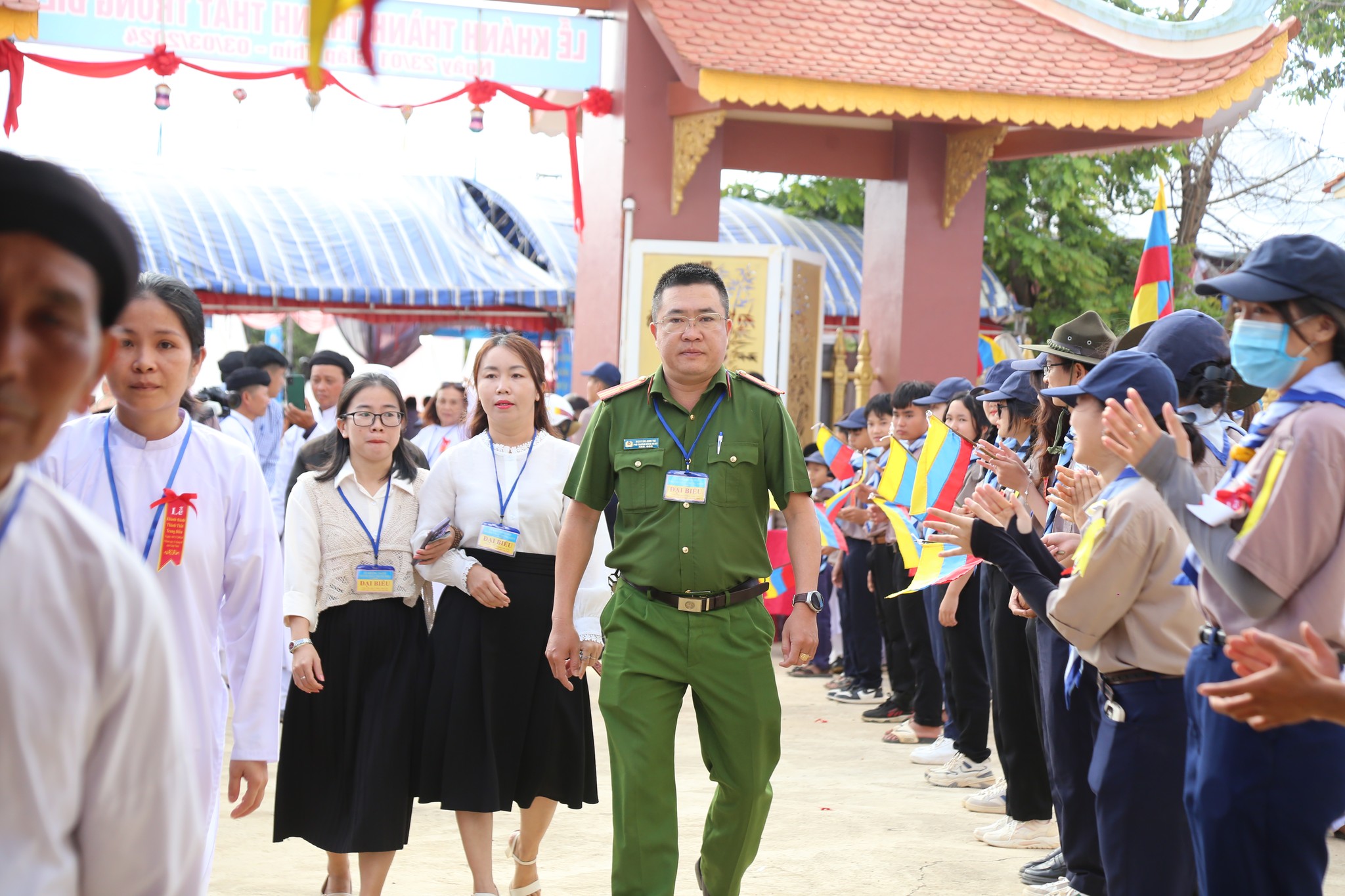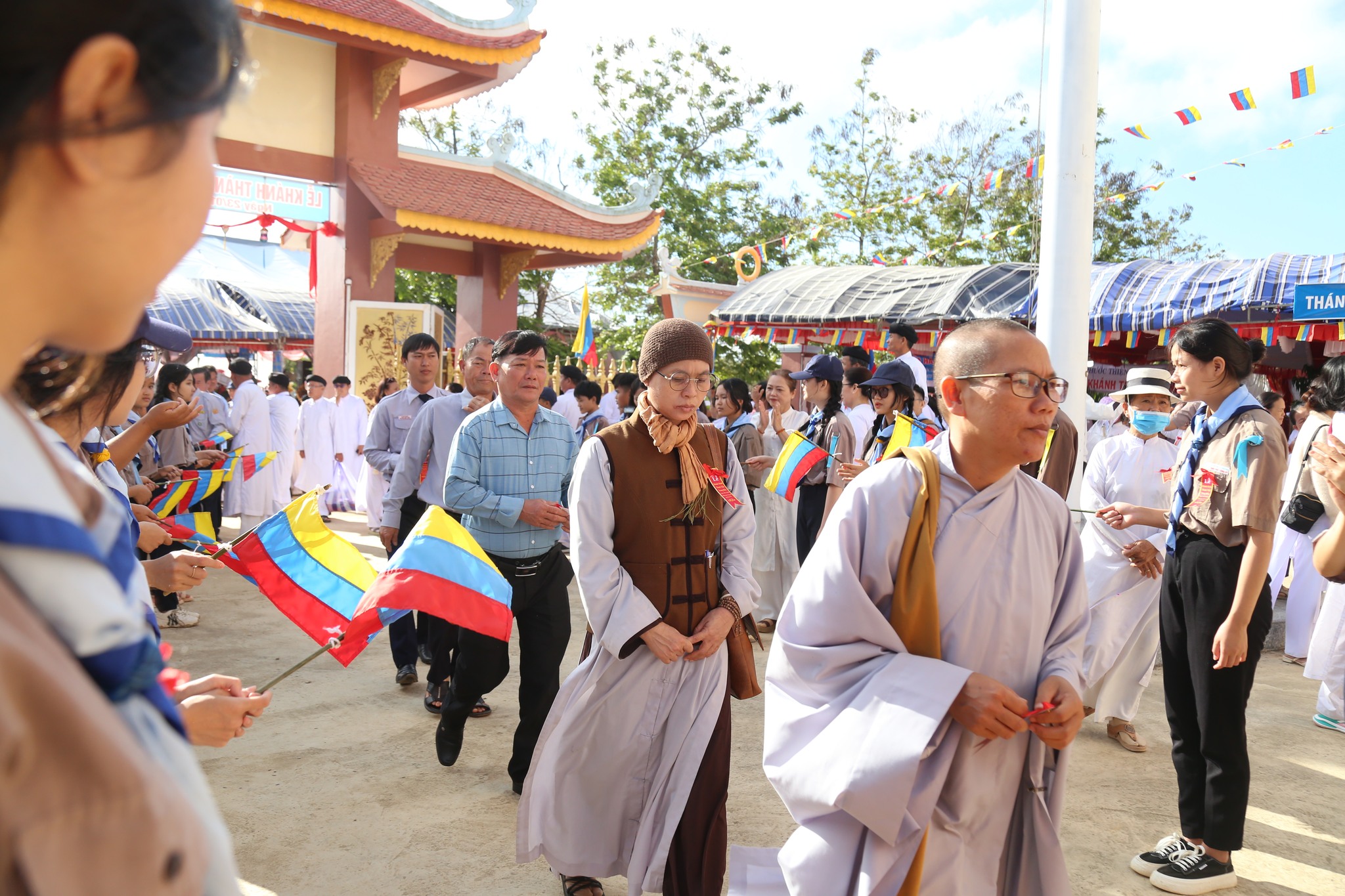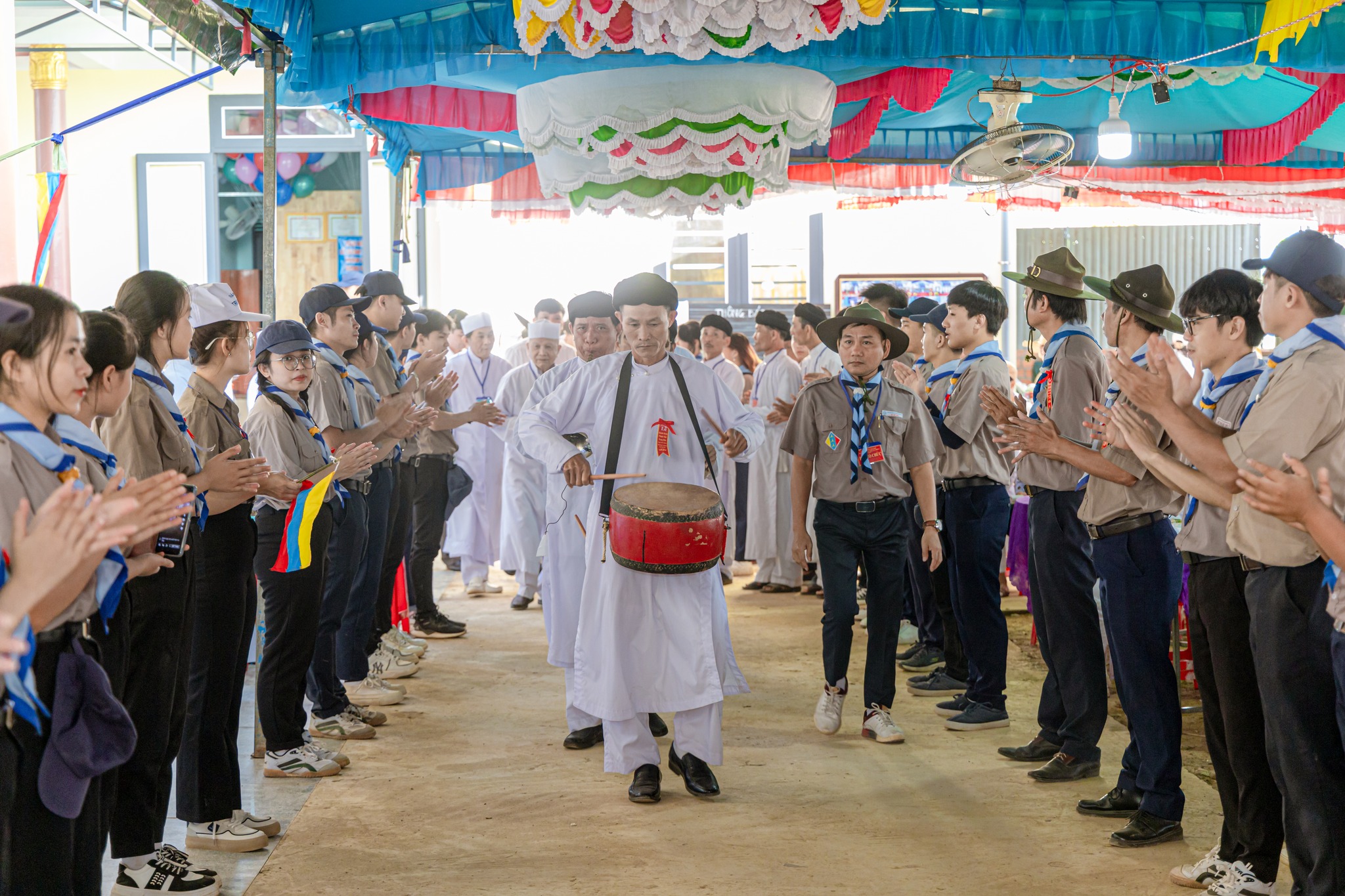 9h00 sáng ngày 23, Tiếng trống hội rền vang đã khai mạc Lễ khánh thành với sự quang lâm tham dự của quý chức sắc Hội Thánh, đại diện các chi phái khác trong nền Đạo, đại biểu chính quyền các cấp sở tại, đại diện các tôn giáo bạn tại địa phương, quý chức sắc, chức việc các Họ đạo, toàn thể quý đạo hữu gần xa cùng các em Hưng Đạo Sinh trên toàn quốc quy tụ.