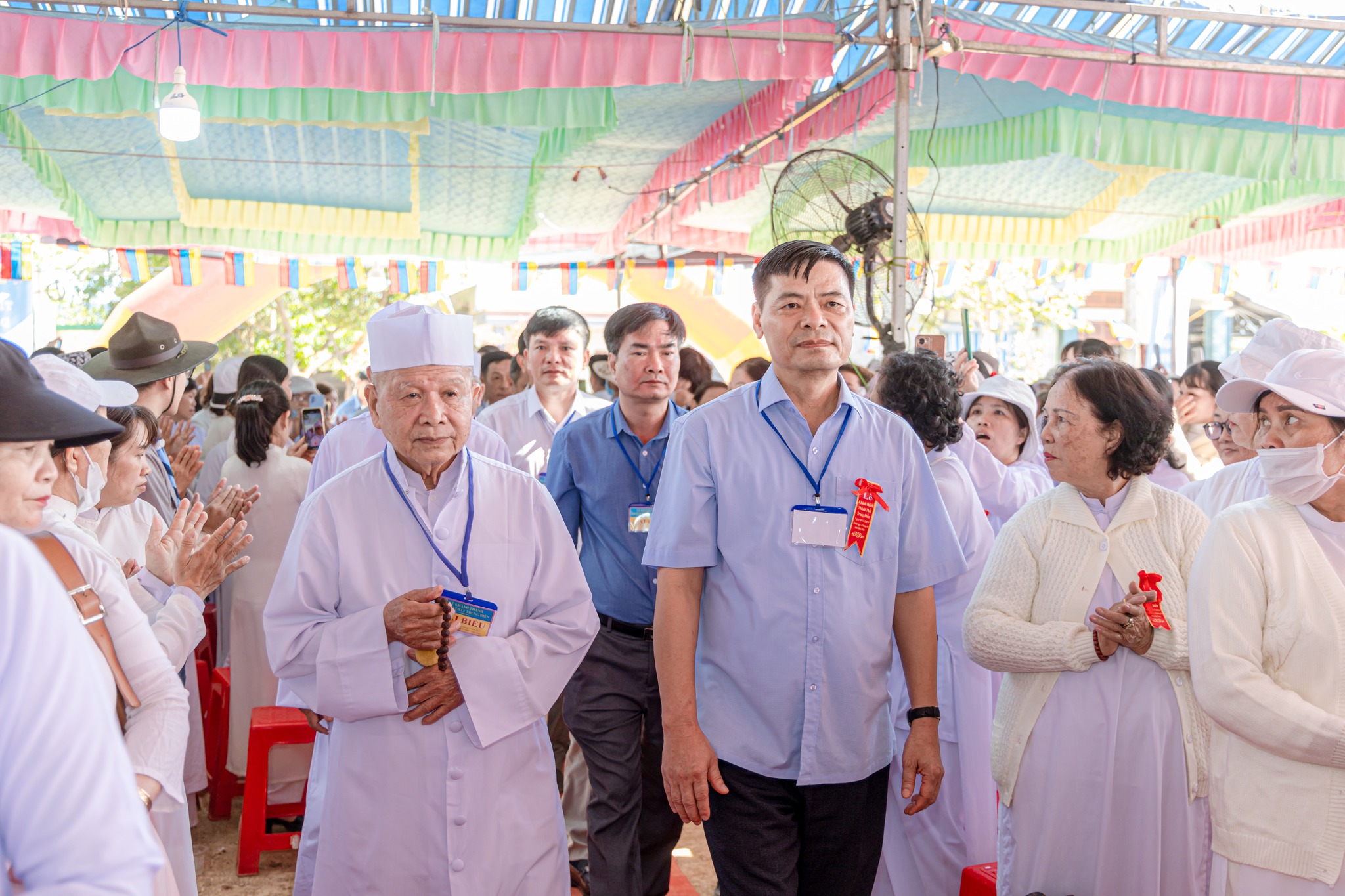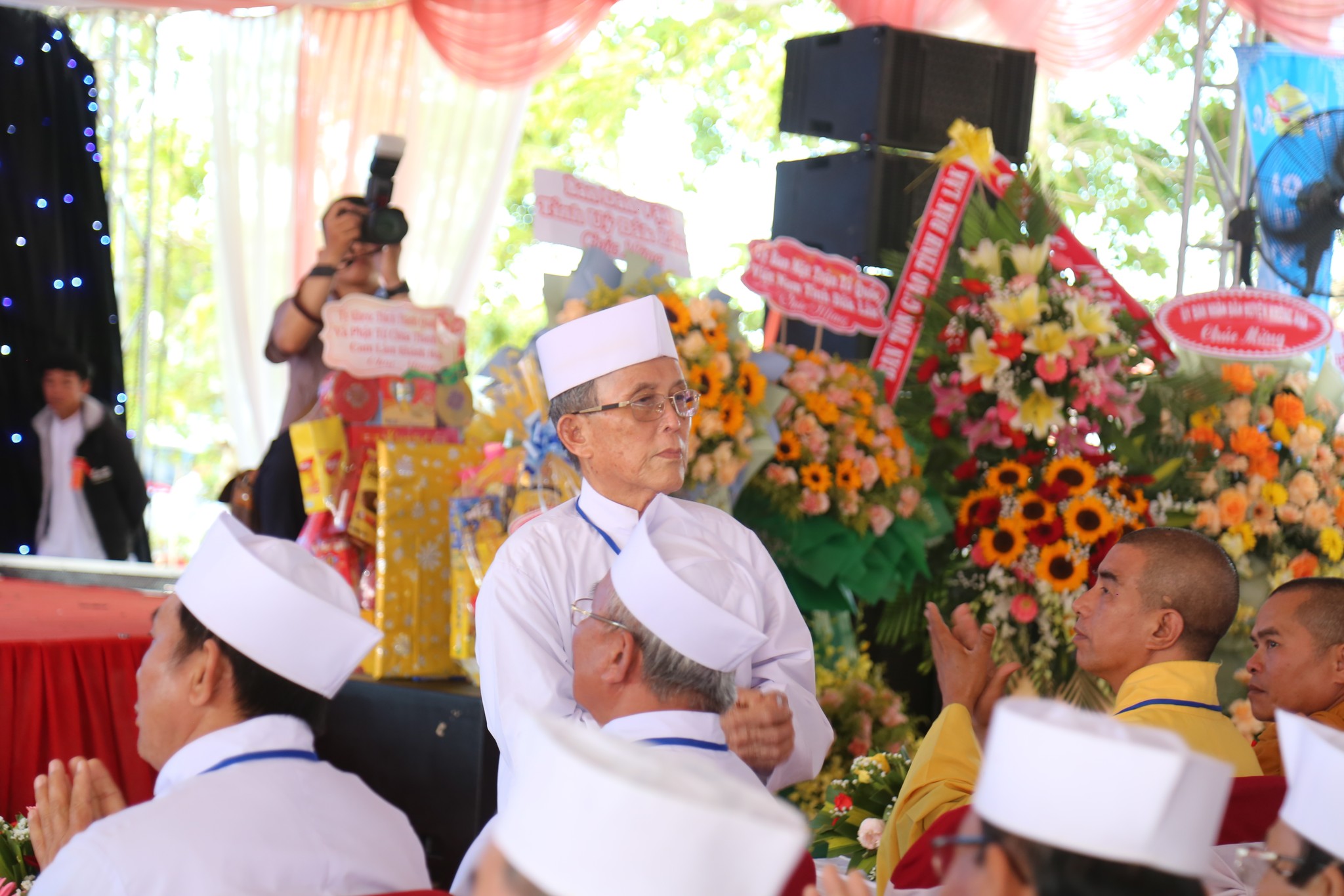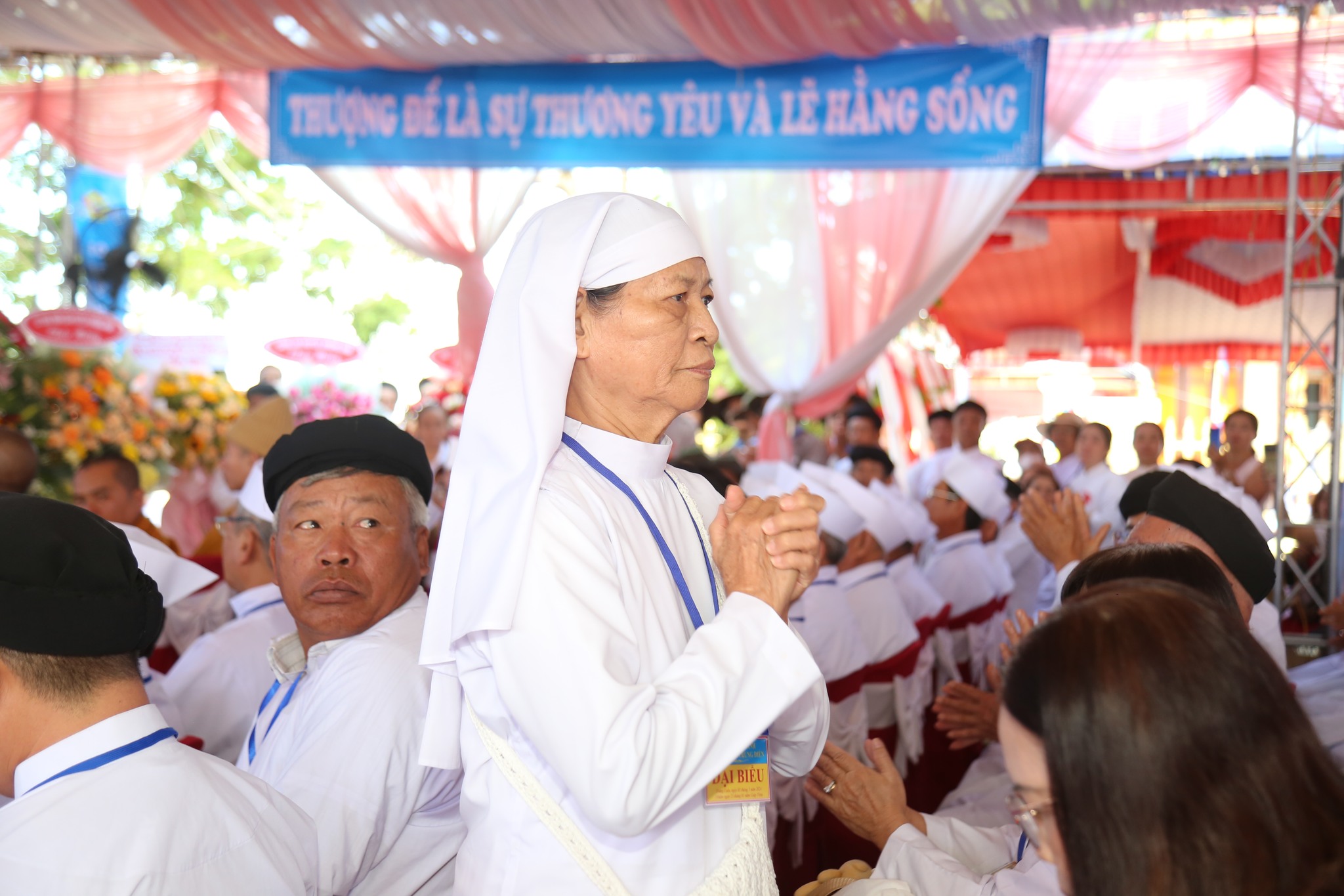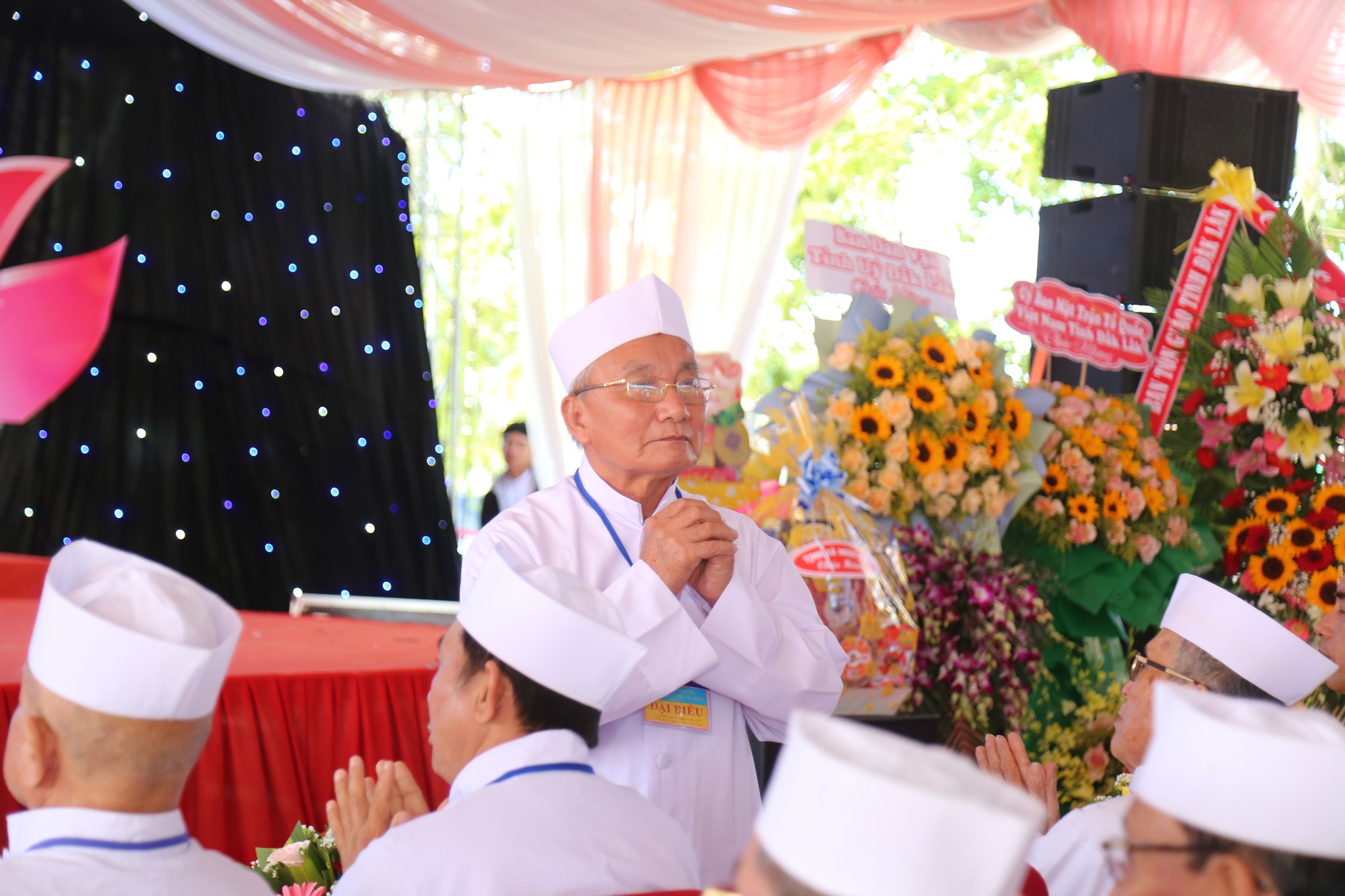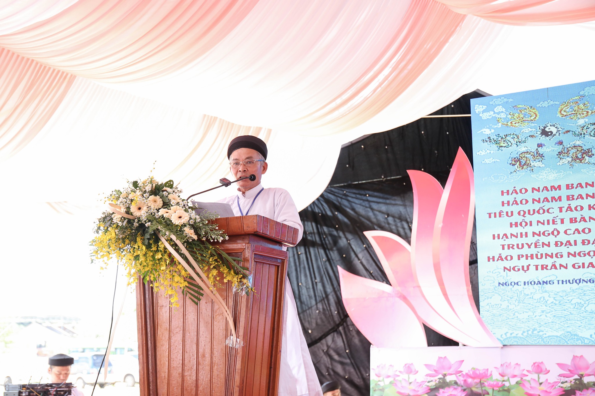 Đại diện Hội Thánh, Đạo huynh Giáo hữu Thái Hải Thanh, Phó Chưởng quản Cơ quan Hành chánh gửi đến Đạo từ chúc mừng ngày đại lễ của AL Giáo sư Thượng Thứ Thanh, Chức sắc lãnh đạo HT do AL bận đạo sự không thể tham dự được. Đạo Huynh Đầu Họ Đạo HĐ Trung Điền, Lễ sanh Ngọc Nhường Thanh, đã có lời cảm tạ và chương trình tại lễ trường được khép lại. Sau đó là nghi thức cắt băng khánh thành trước ngôi Tam Đài vào lúc 10h30.