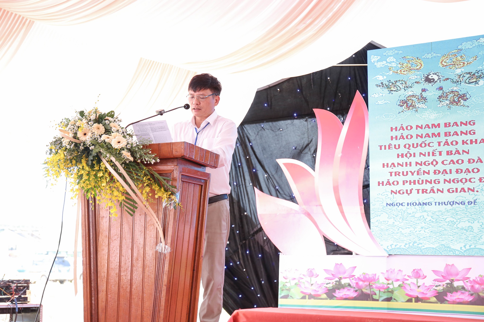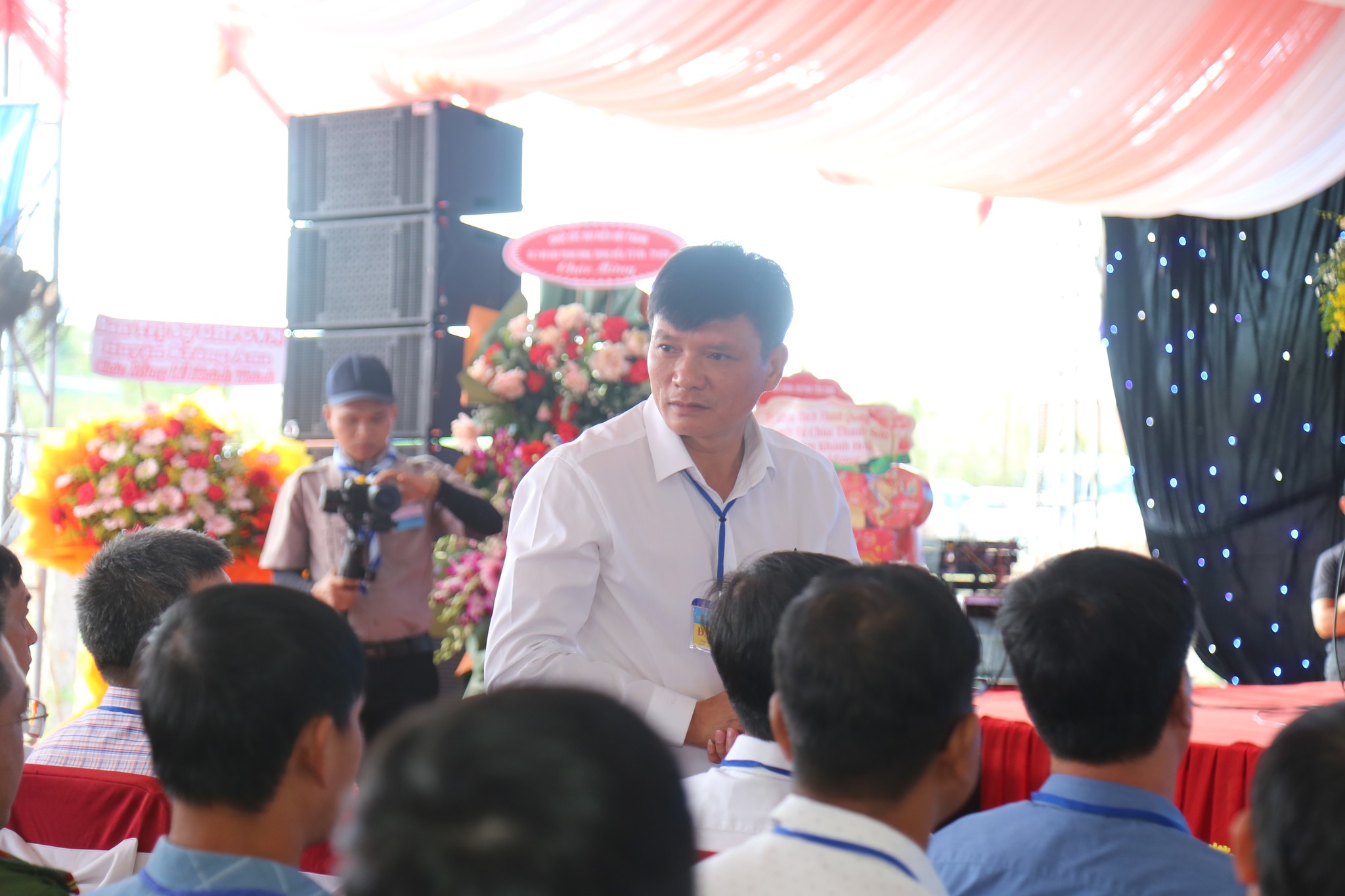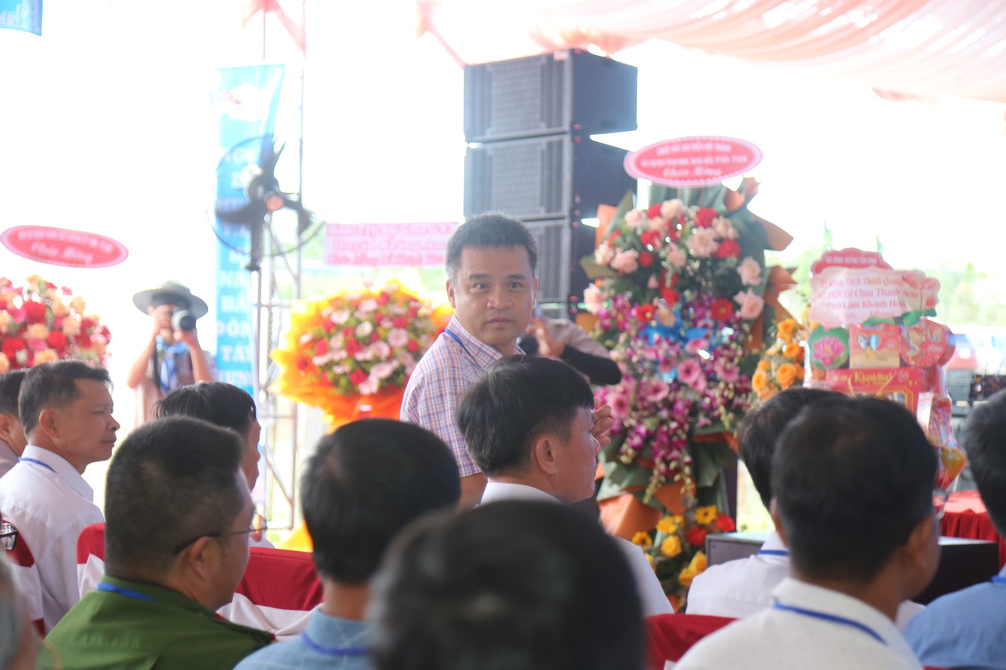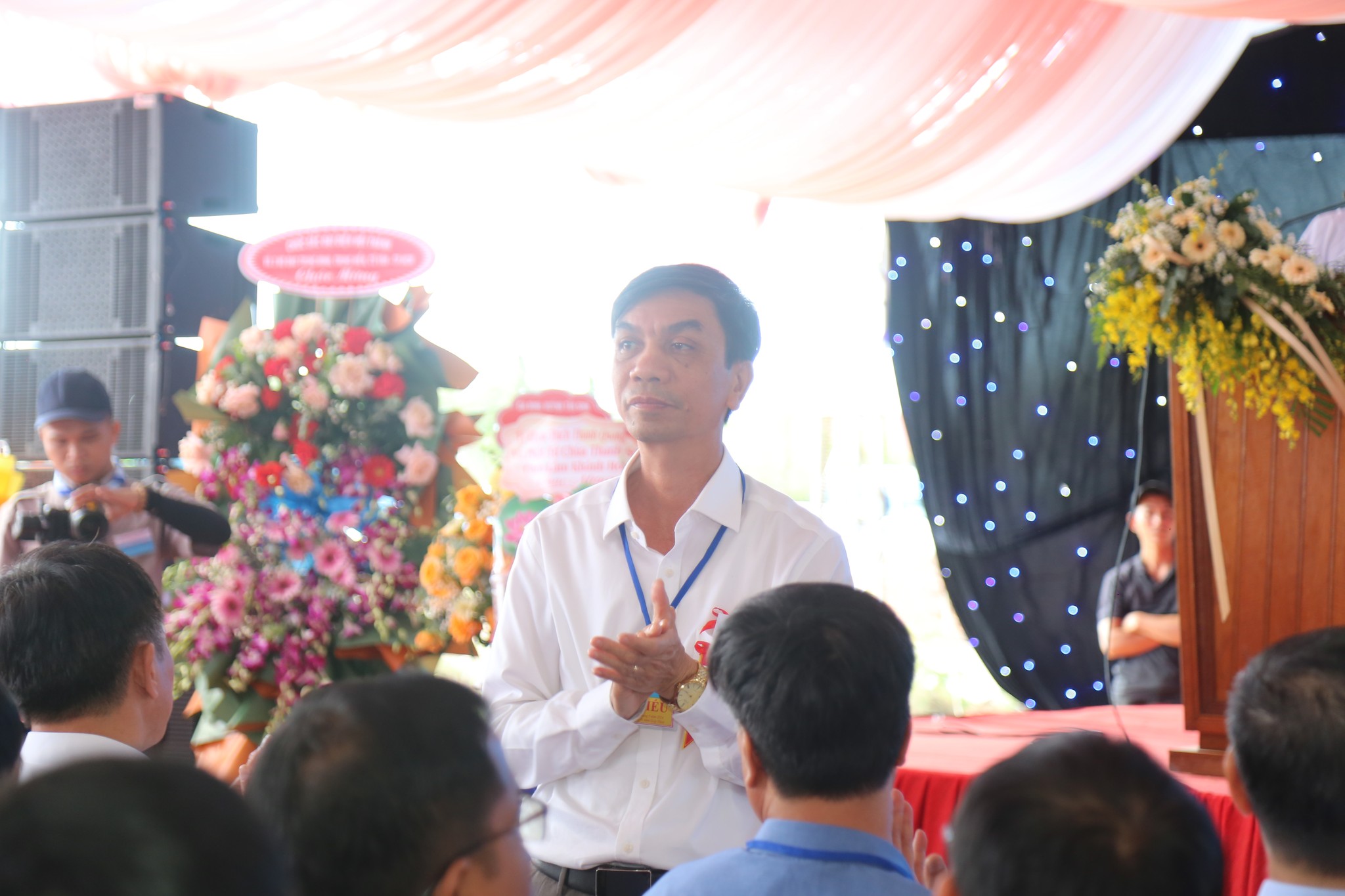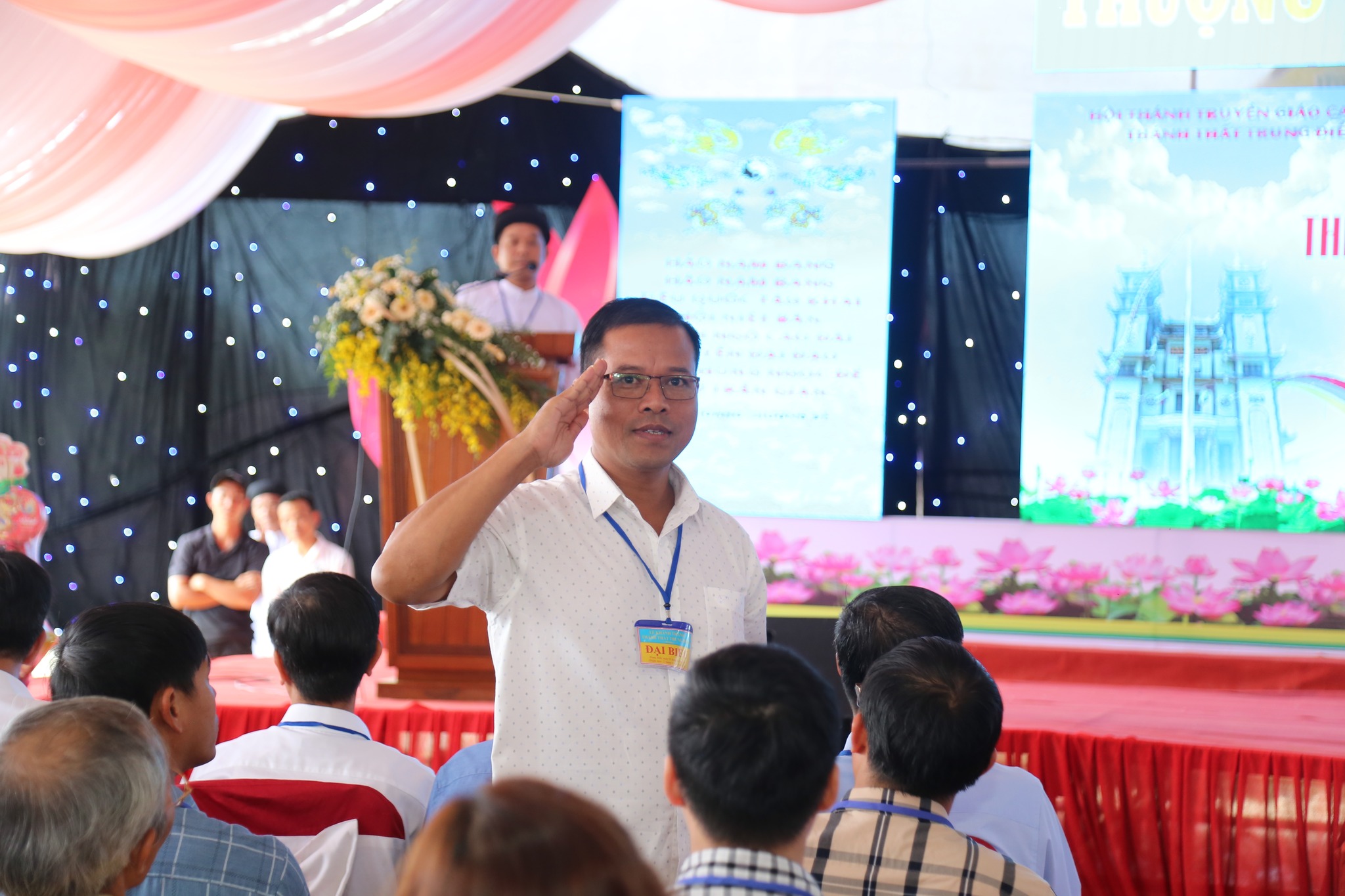 Đại diện Hội Thánh, Đạo huynh Giáo hữu Thái Hải Thanh, Phó Chưởng quản Cơ quan Hành chánh gửi đến Đạo từ chúc mừng ngày đại lễ của AL Giáo sư Thượng Thứ Thanh, Chức sắc lãnh đạo HT do AL bận đạo sự không thể tham dự được. Đạo Huynh Đầu Họ Đạo HĐ Trung Điền, Lễ sanh Ngọc Nhường Thanh, đã có lời cảm tạ và chương trình tại lễ trường được khép lại. Sau đó là nghi thức cắt băng khánh thành trước ngôi Tam Đài vào lúc 10h30.