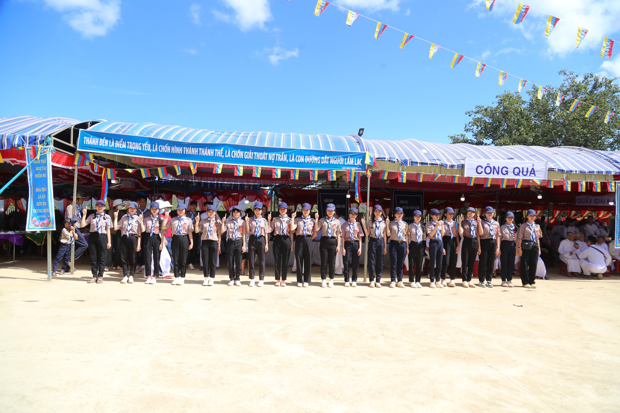 Đón nhận niềm hân hoan, vui mừng trong ngày lạc thành ngôi Tam Đài Thánh thất Trung Điền, hơn 250 Hưng Đạo Sinh đã chung tay xây dựng chương trình văn nghệ hồi hướng, cùng chung lo phụng sự các hoạt động để dịp lễ diễn ra thành công tốt đẹp trong ân lành thiêng liêng.